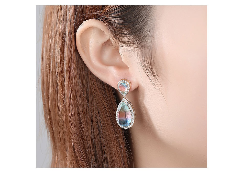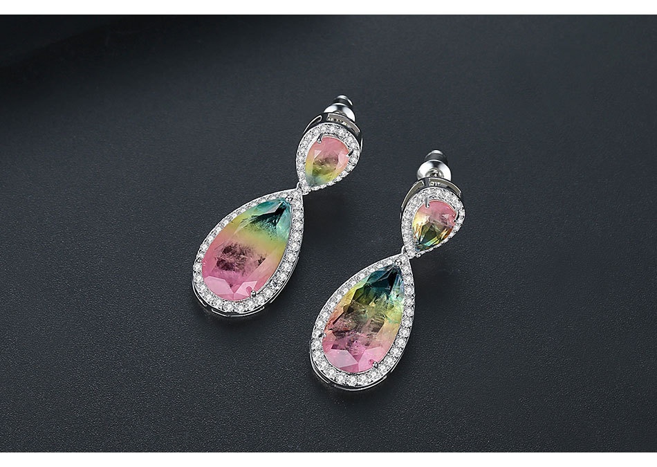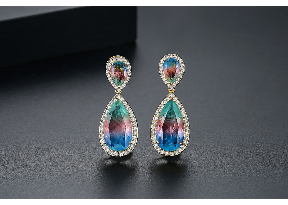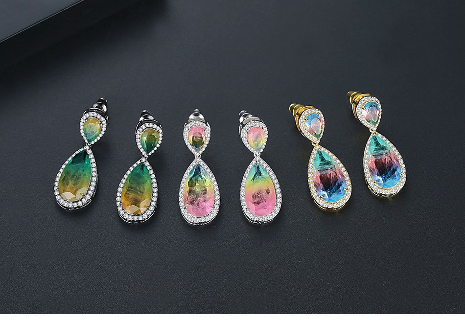 أقراط من الأحجار الكريمة ذات الألوان الزاهية، مرصعة بالنحاس، مرصعة بالأحجار الكريمة الاصطناعية