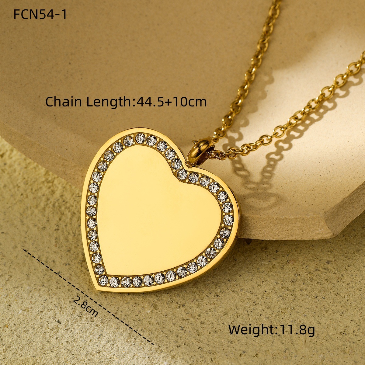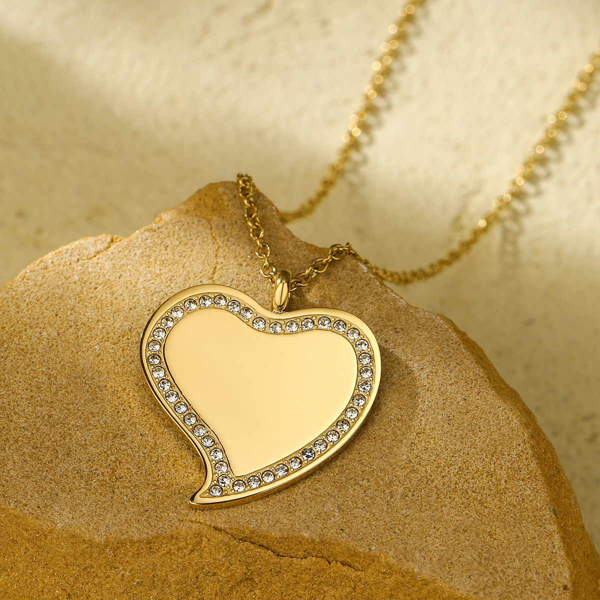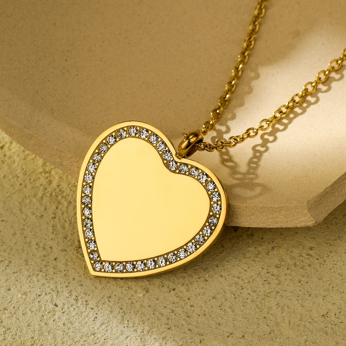 قلادة هندسية دائرية على شكل قلب مرصعة بالألماس من الفولاذ التيتانيوم