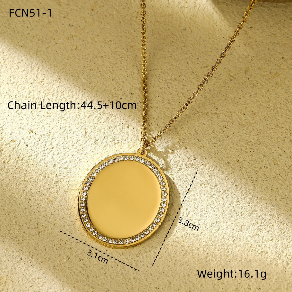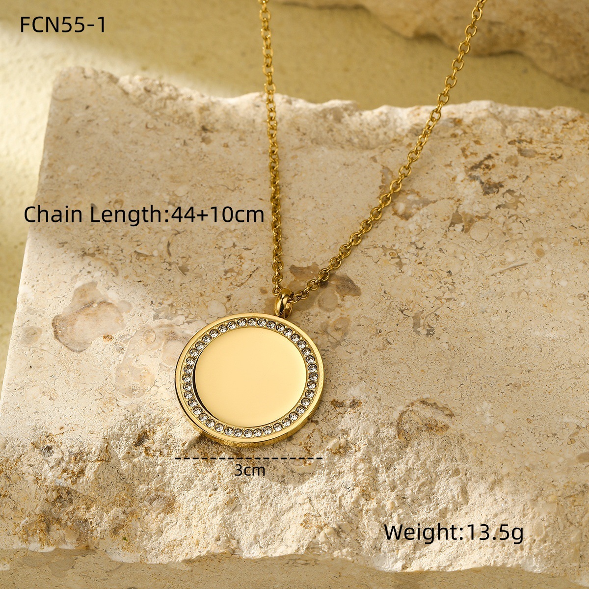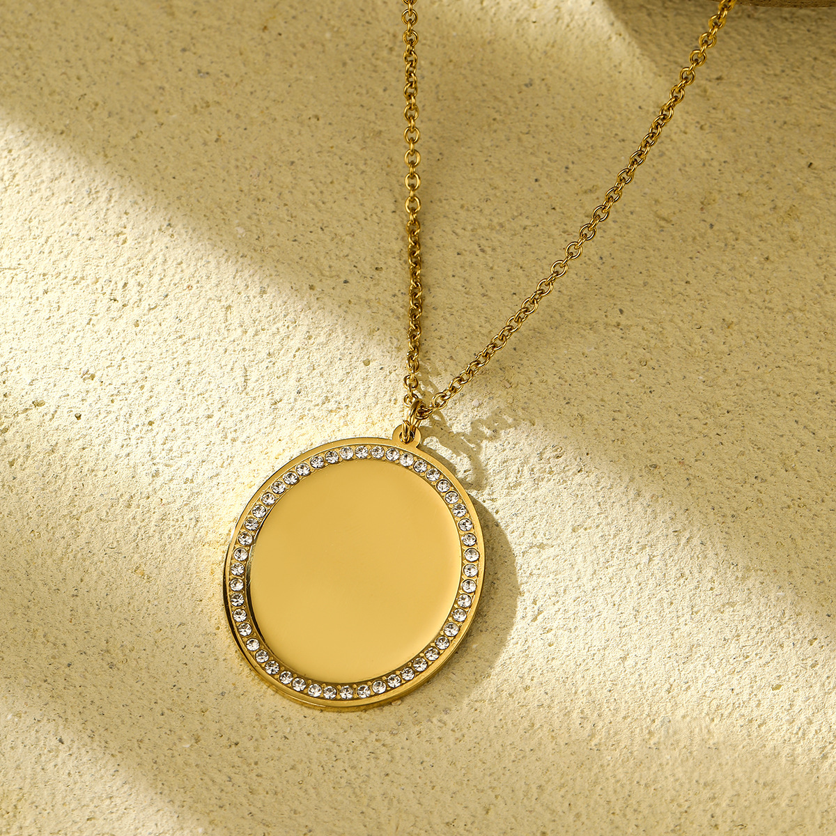 قلادة هندسية دائرية على شكل قلب مرصعة بالألماس من الفولاذ التيتانيوم