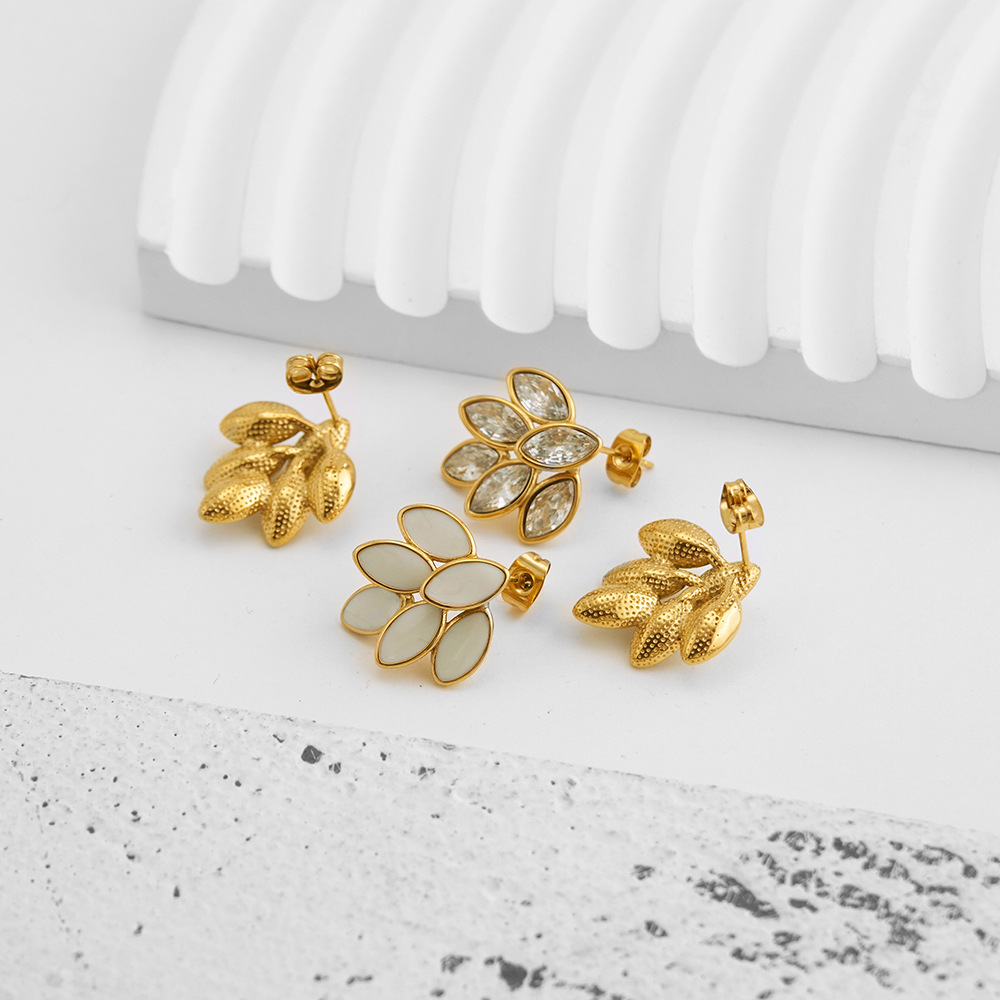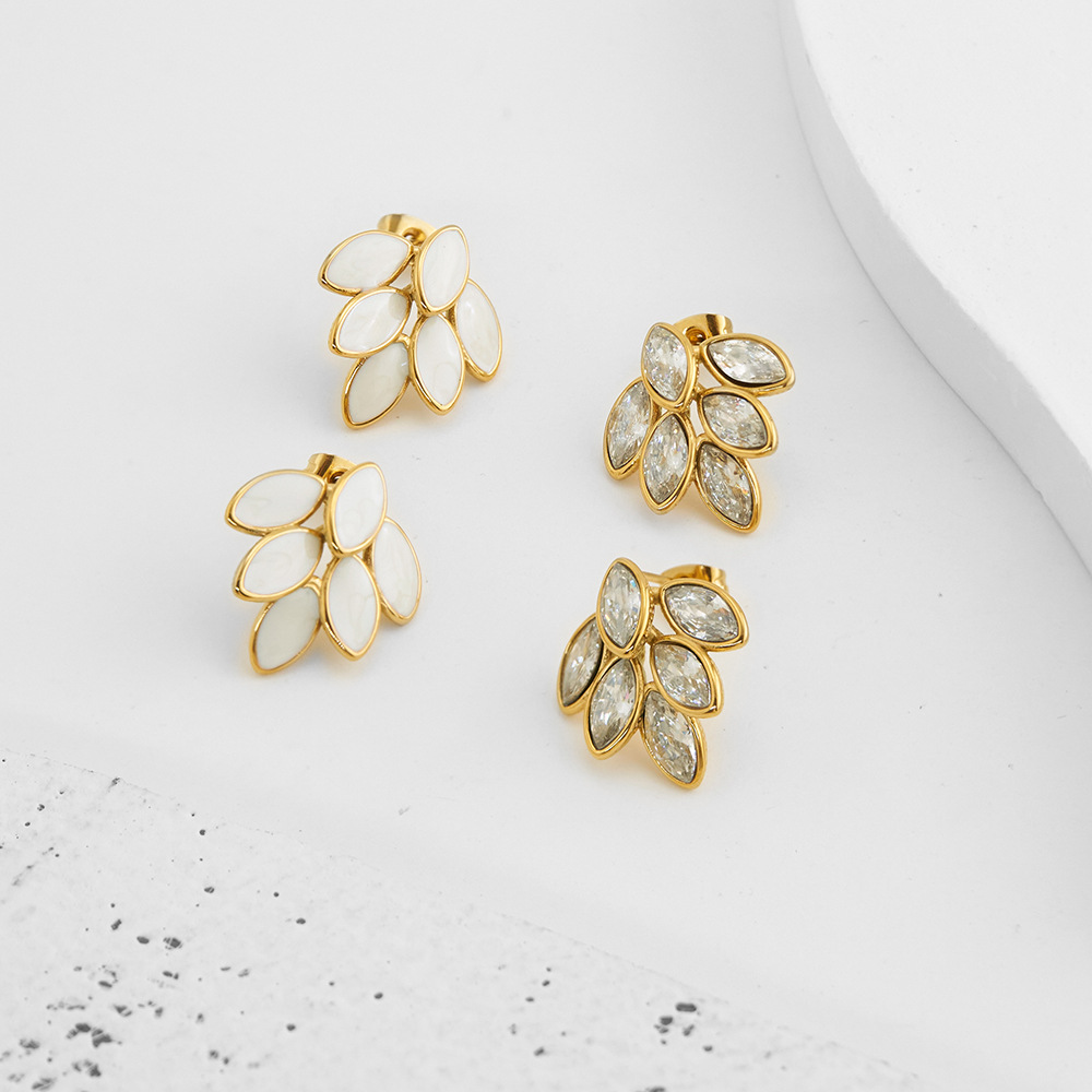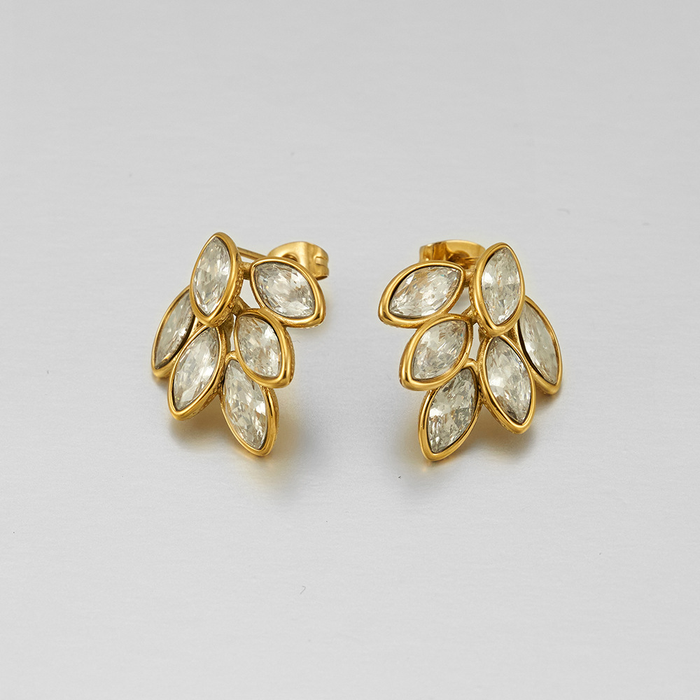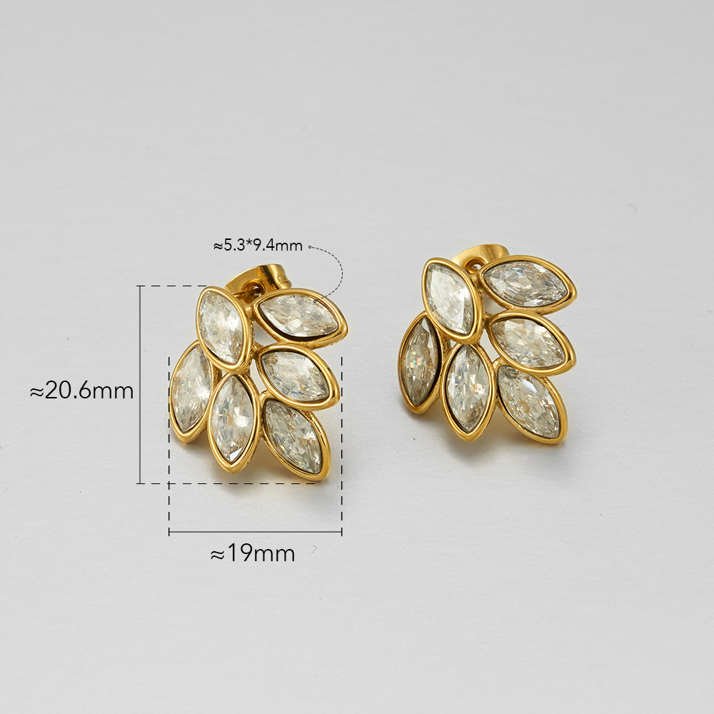 European And American Full Diamond Dripping Oil 6 Leaves Gold Ear-ring Clip