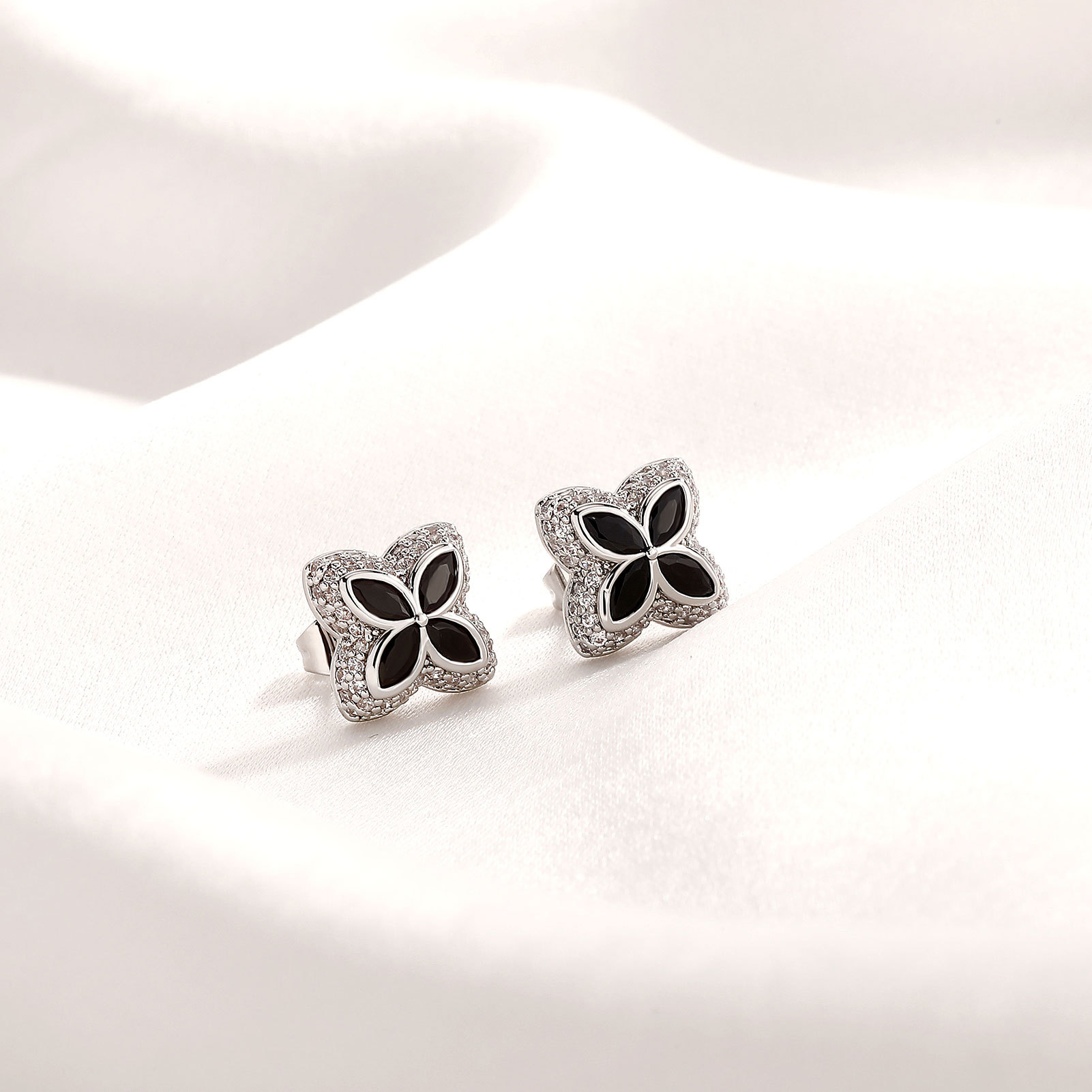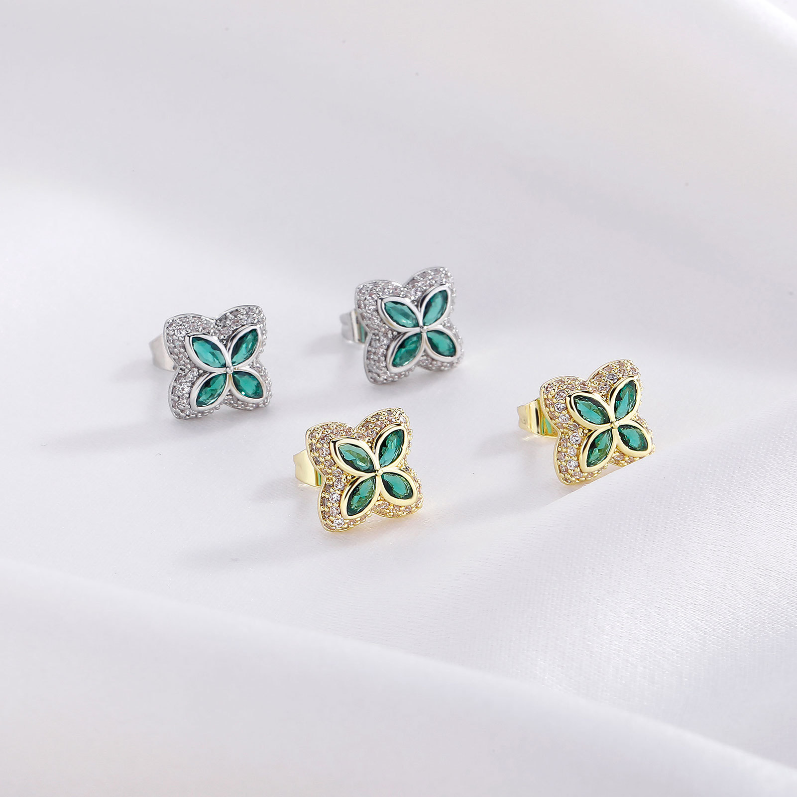 Four-Leaf Clover Full Diamond Inlaid Ear Studs Simple Earrings