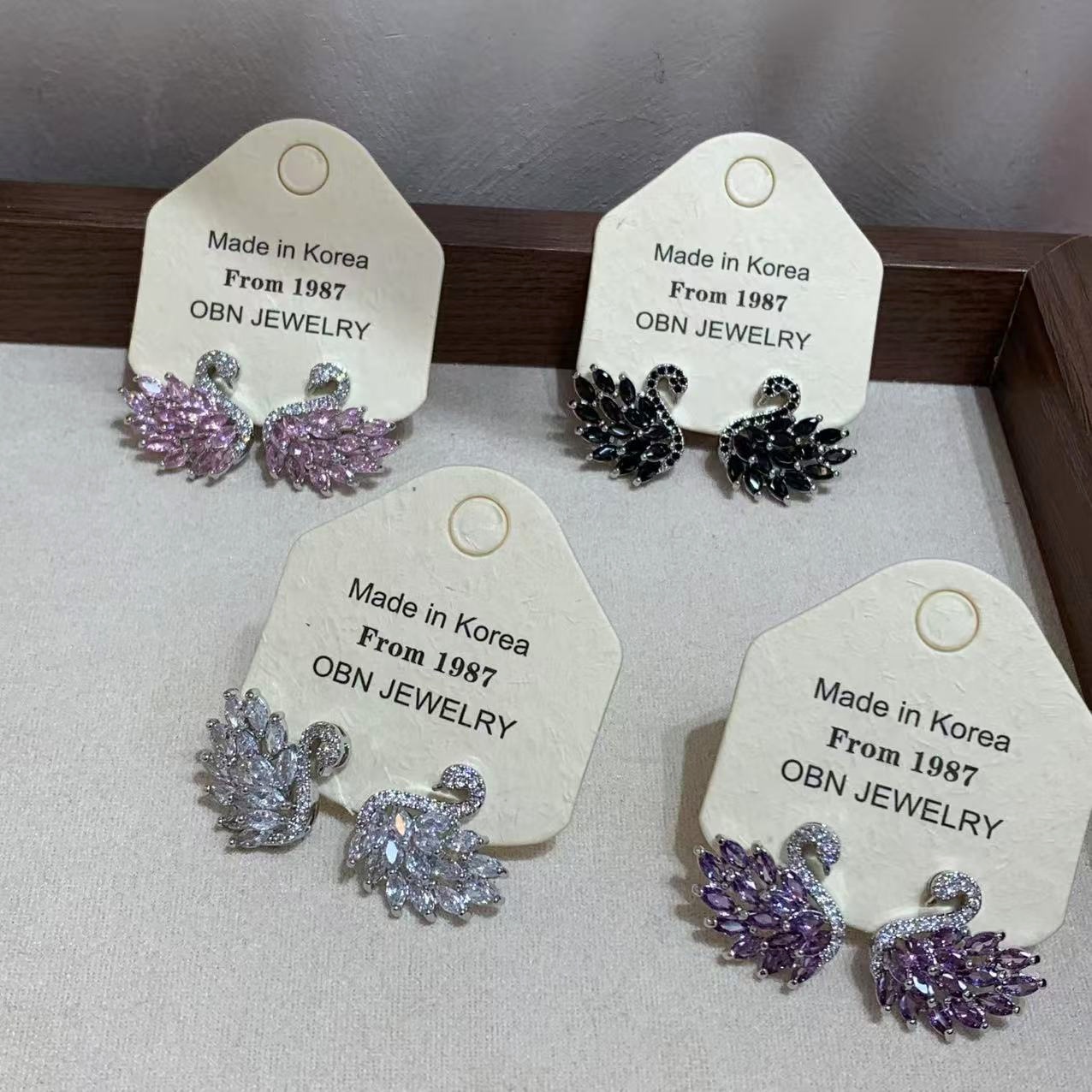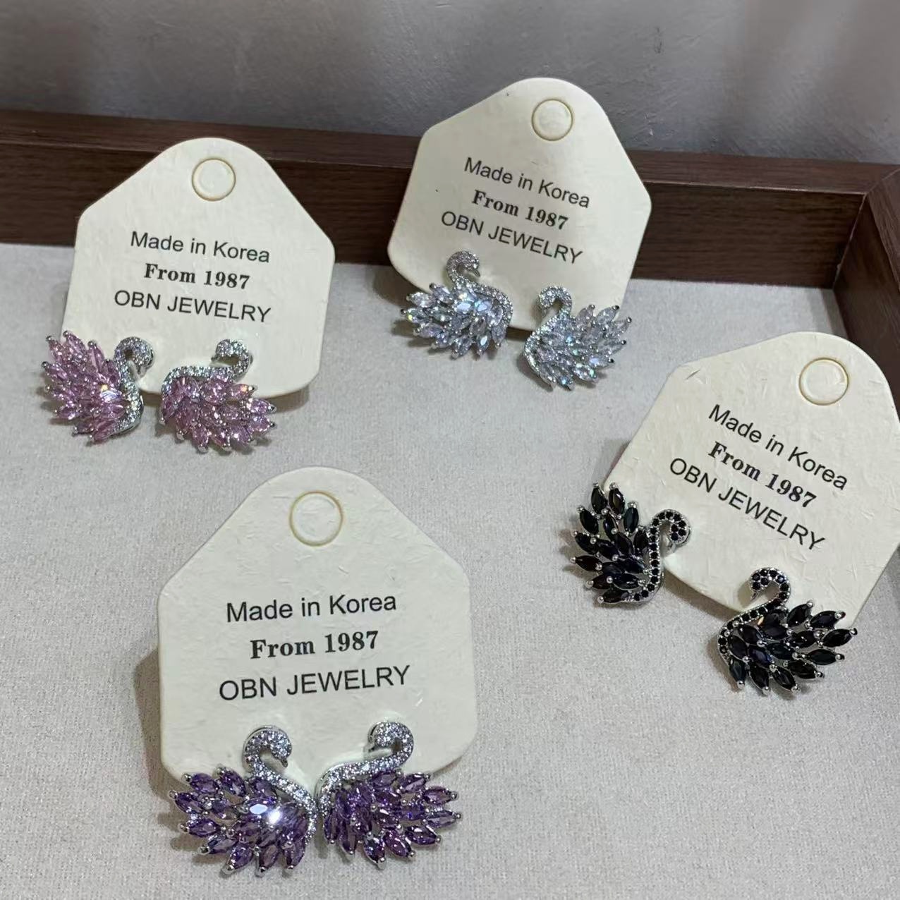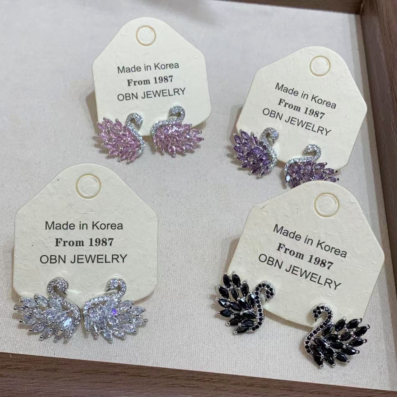 Color: H0669 Silver White Swan Earrings, H0669A Pink Swan Earrings, H0669B Violet Swan Earrings, H0669C Black Swan Earrings