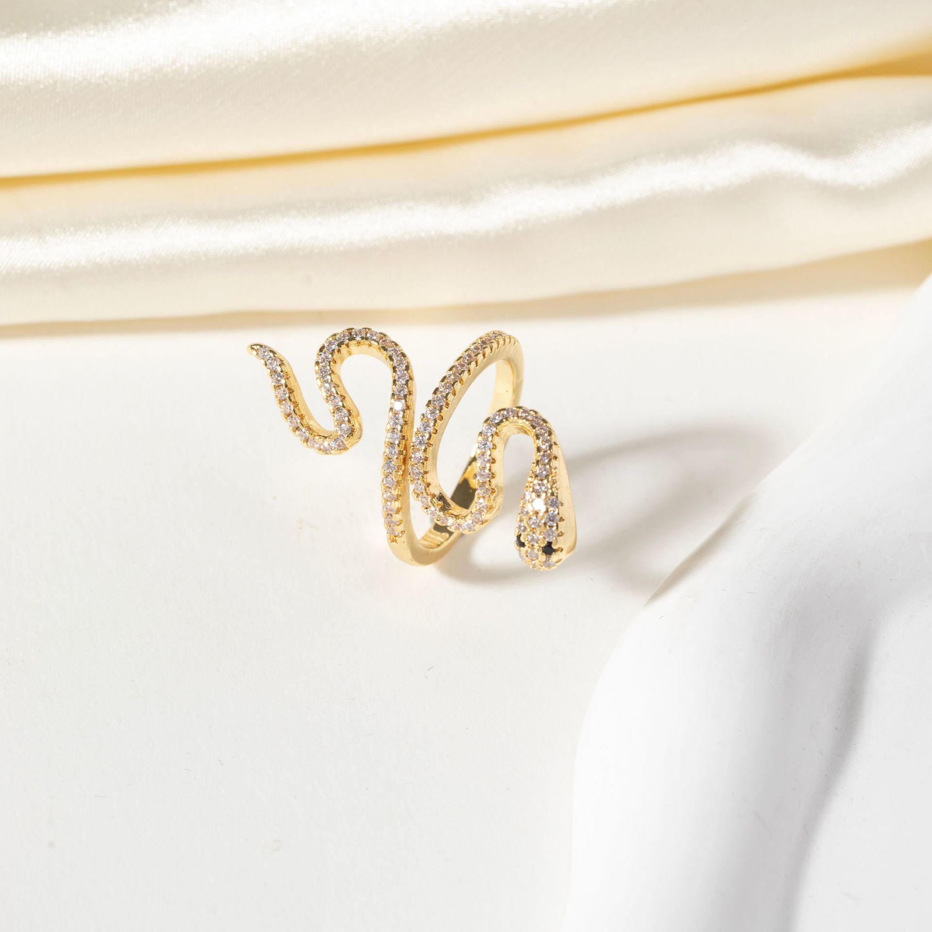 Light Luxury Micro-Set Zircon Personalized Snake-Shape Ring For Women