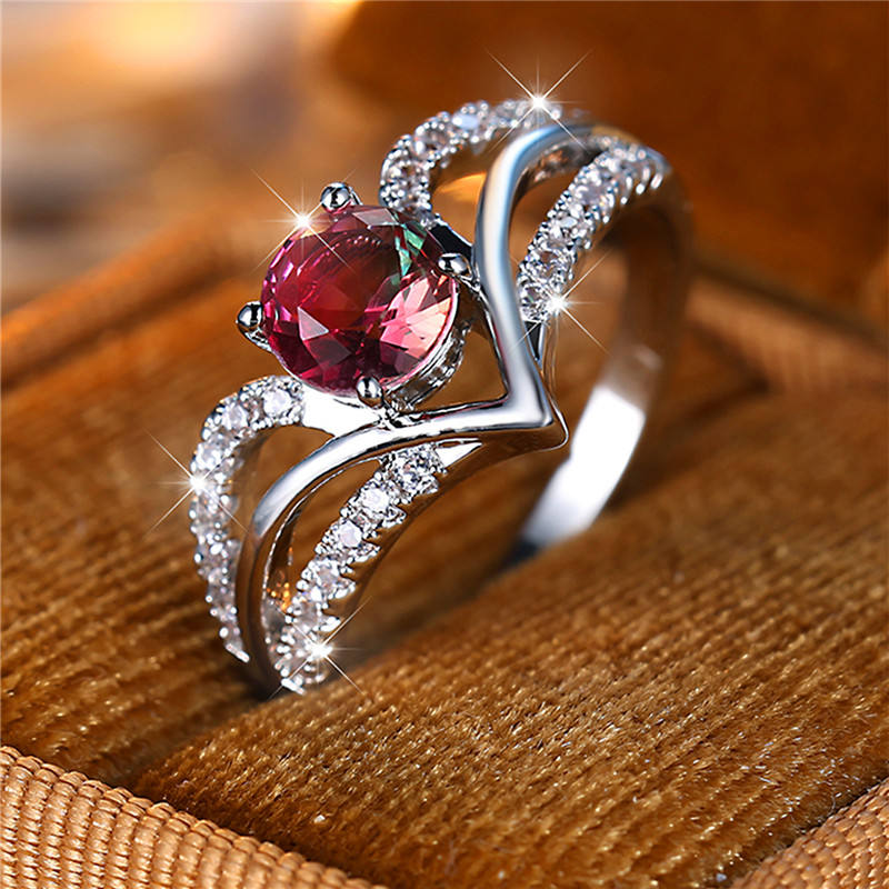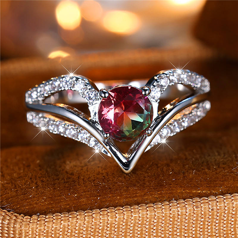 Luxury Womens Red And Green Round Zircon Engagement Ring
