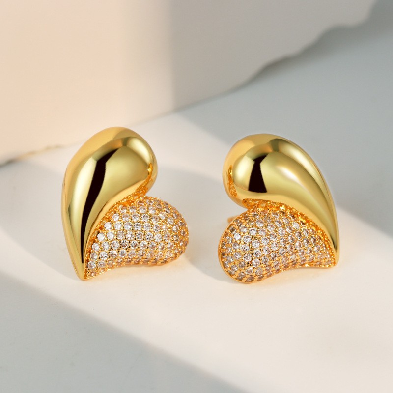 New Fashion Diamond Love Heart Stud Earrings Women's High Sense