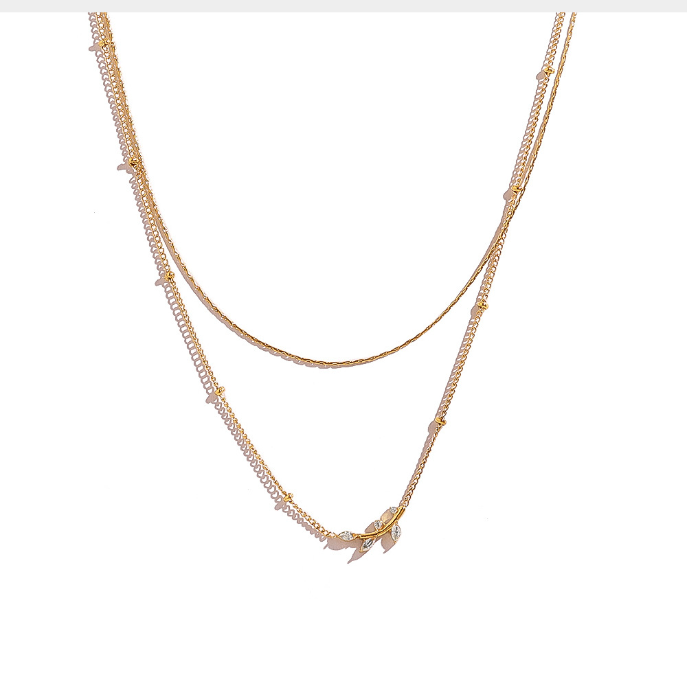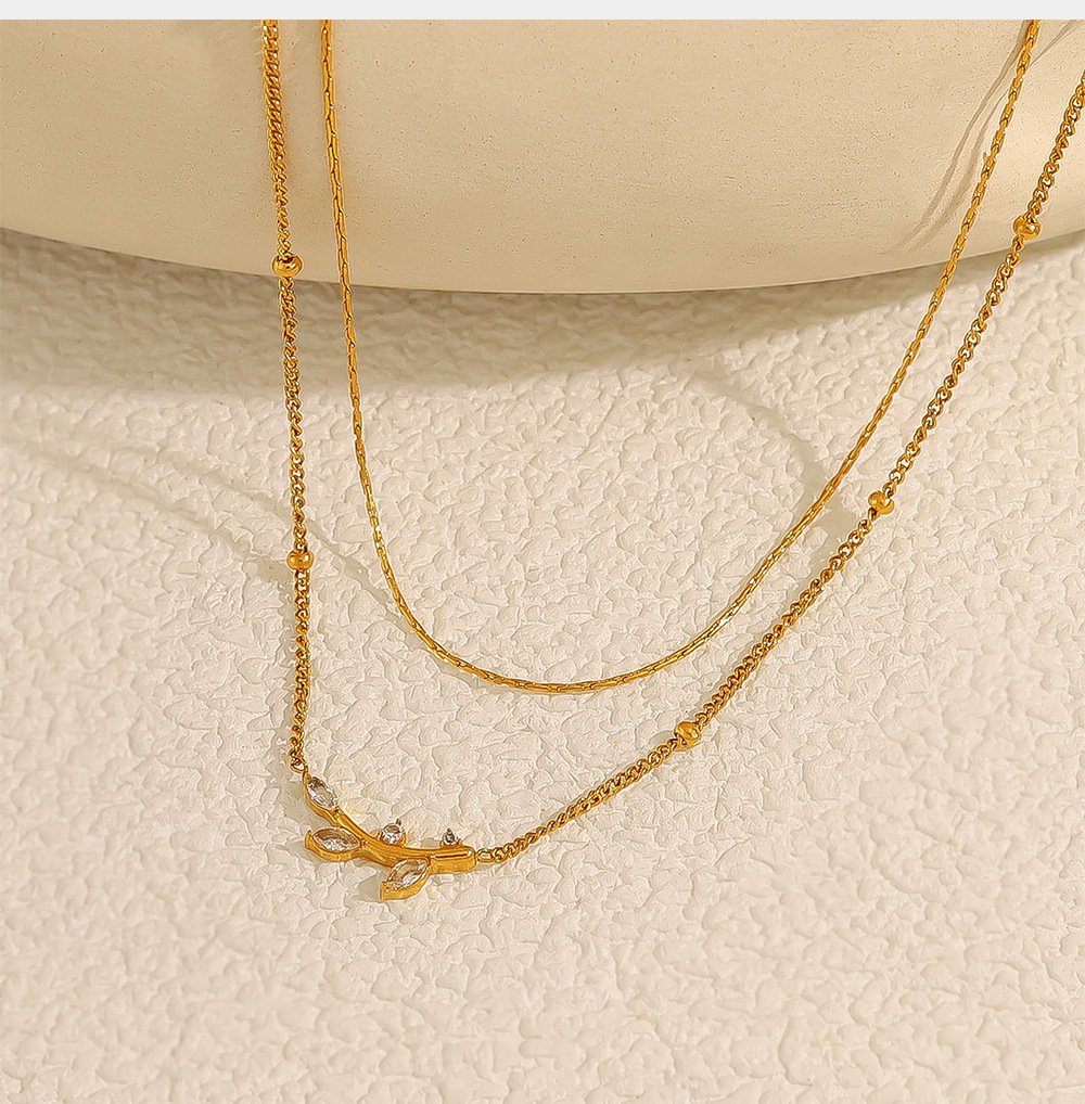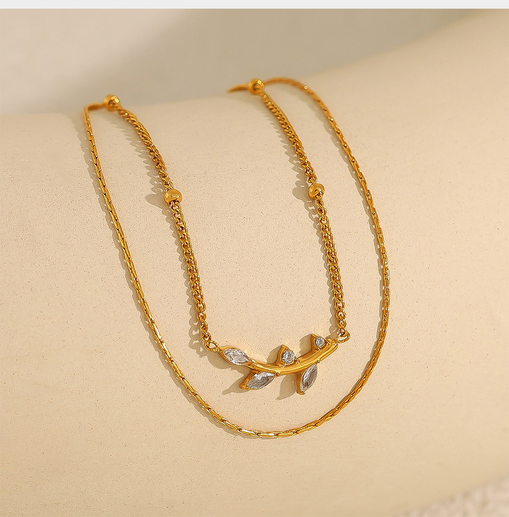 Olive Leaf Pendant Double-Tier Diamond-Encrusted Light-Luxury Clavicle Chain For Women