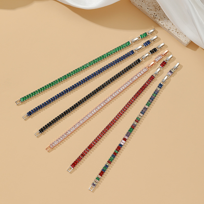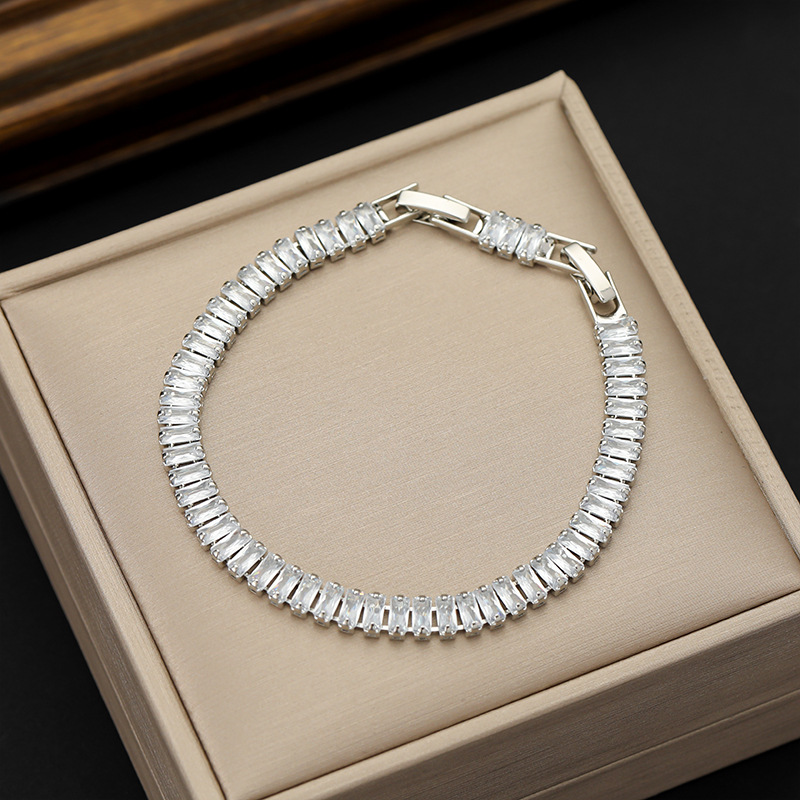 Rectangular Zircon Bracelet Extended Buckle Adjustable Length Tennis Chain