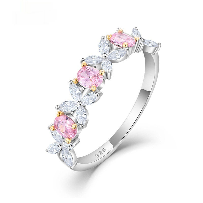 Pink White Zircon Ring - Niche Geometric Oval Silver Jewelry