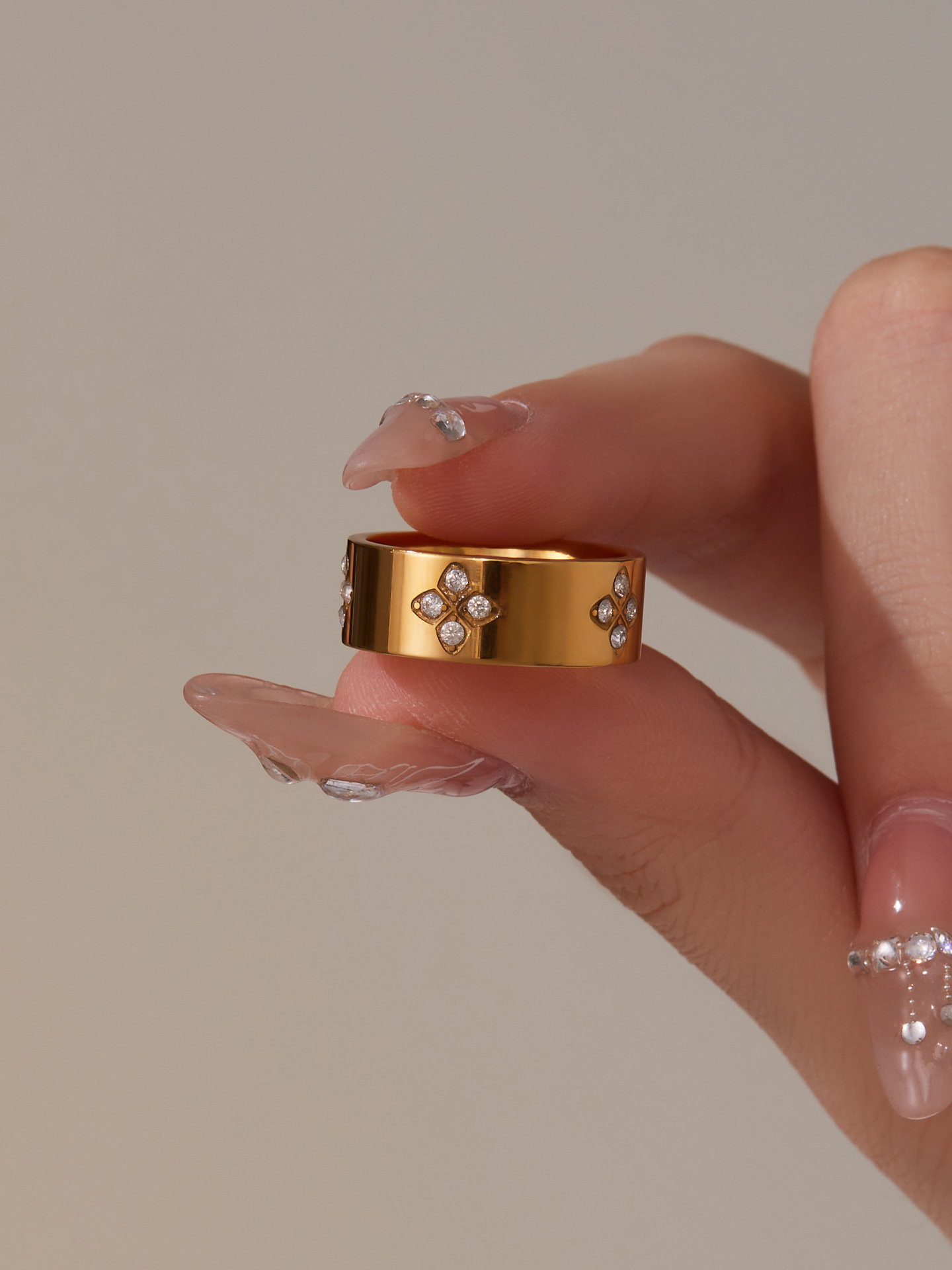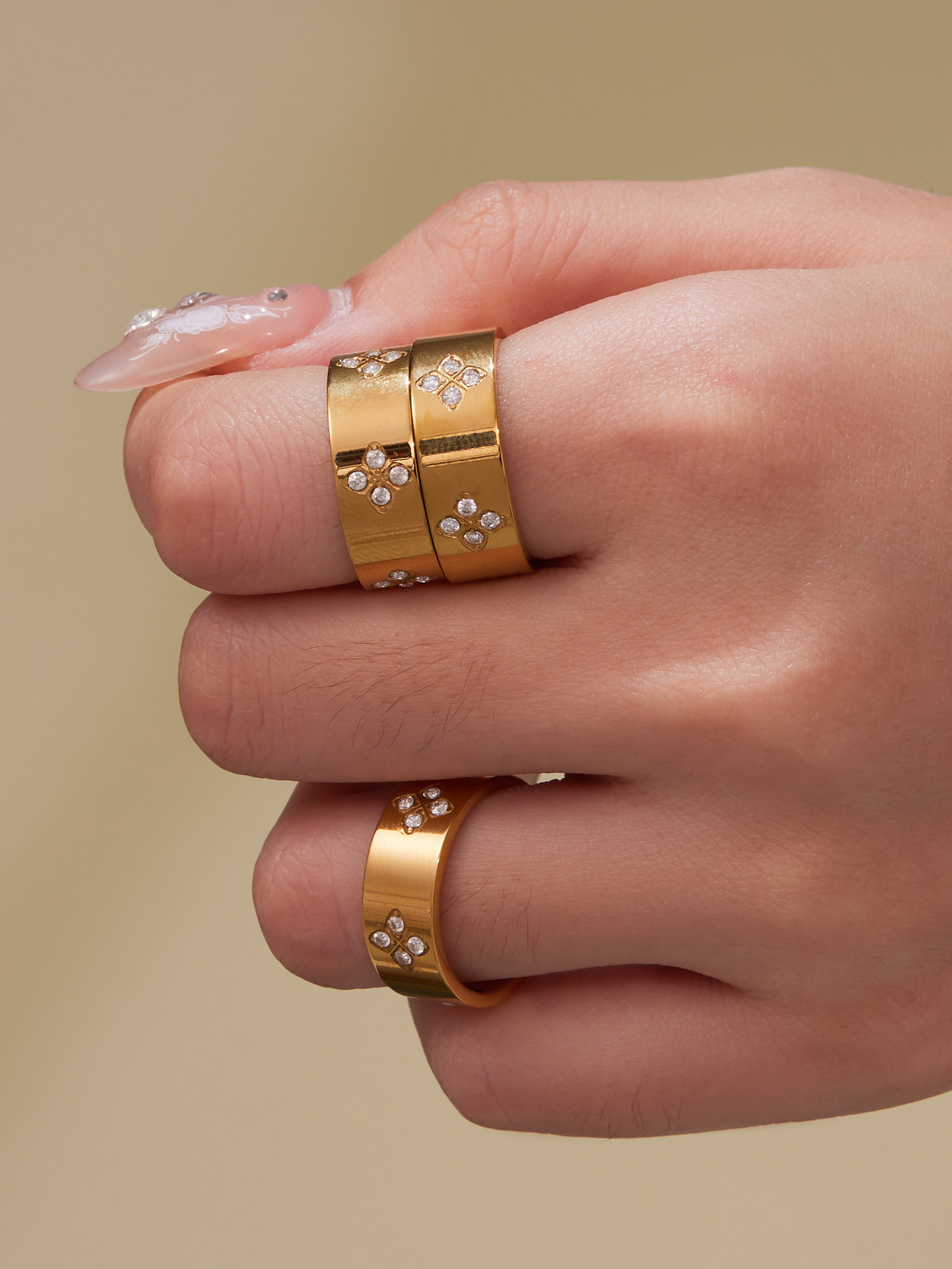 Stainless Steel Ring With Claw Settings And Plum Blossom-shaped Zircon Accents